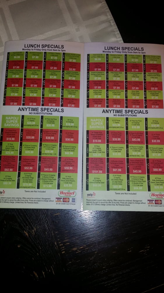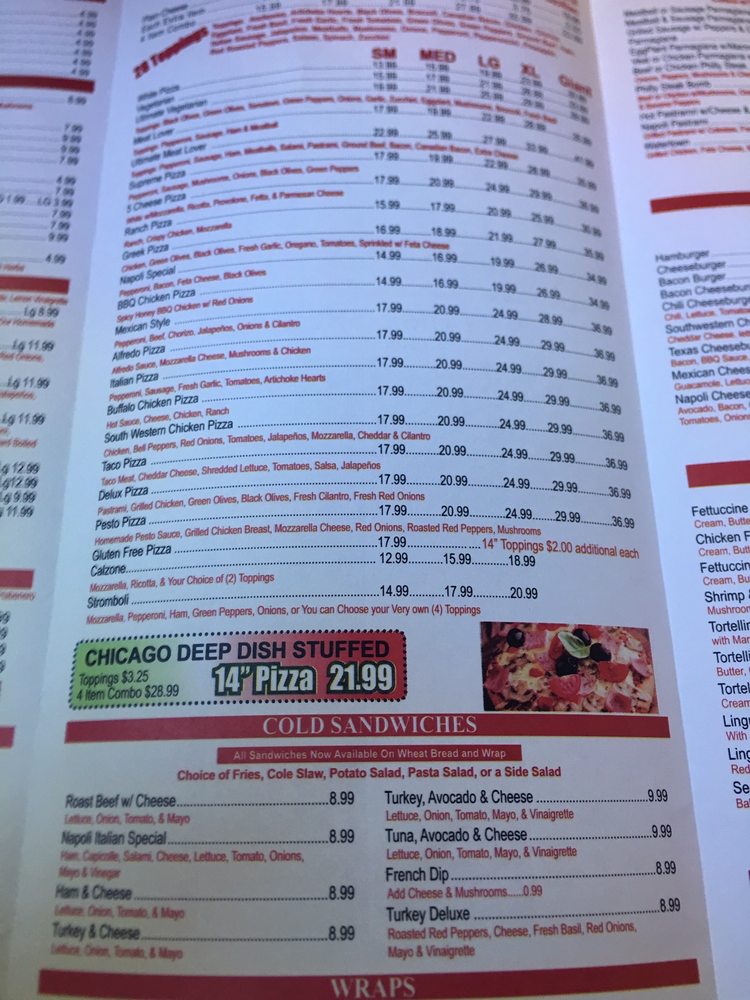 Introducing Napoli Pizza, a casual restaurant in Henderson, NV offering a wide range of options for lunch, dinner, and late-night cravings. With many vegetarian choices available, Napoli Pizza also provides wheelchair access, outdoor seating, and free Wi-Fi. Customers can enjoy a variety of lunch specials, including Triple Decker BLT, Stromboli, and more. The pizza menu boasts unique options like BBQ Chicken, Greek, and Chicago Deep Dish. Reviewers praise the cannoli and tiramisu desserts, while loyal customers rave about the perfectly cooked pies and stromboli. With excellent service and delicious food, Napoli Pizza is a must-visit spot for pizza lovers in the area.